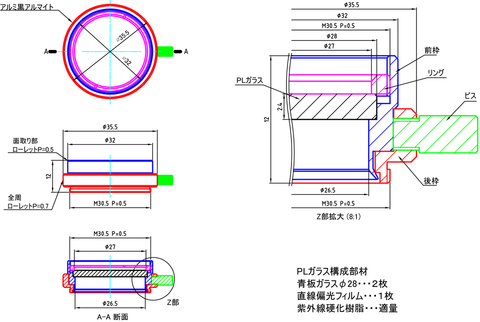 渋谷光学では産業用カメラによく使用されるサイズを標準品として取り揃え、短納期のご要望にお応えしております。